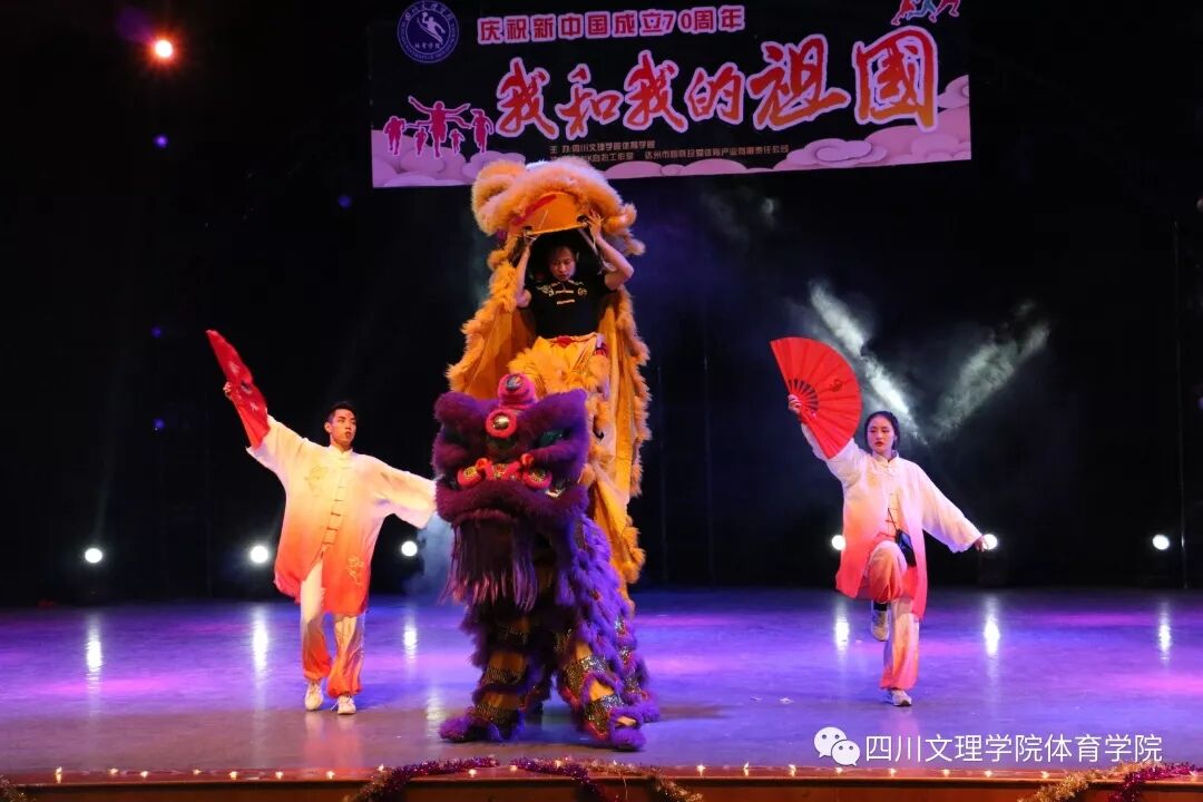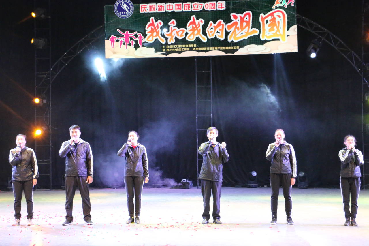 1900整,学院党总支王兆忠书记代表学院党政致开幕词,舞蹈、小品、武术、健美操、歌曲等节目精彩上演。歌曲串烧《我用青春,告白祖国》用嘹亮的歌声表达了学子珍习韶华、建设祖国的决心;小品《时光艺术团》以幽默搞怪的舞姿,让观众领略时代的进步;微话剧《我的体育梦》生动体现了体育人对体育梦想的追求与坚持;舞蹈《梦回青舞》、《One TwoThere,Four》、《爵士棍》让观众随着优美的旋律,感受到了青春的活力。《体密秀》秀出了体育学子美与力、勤奋与刻苦;跆拳道《竹简武》、武术《精武忠魂》展现了学子精湛的专业技能。两个多小时的晚会在合唱《我和我的祖国》中落下帷幕。