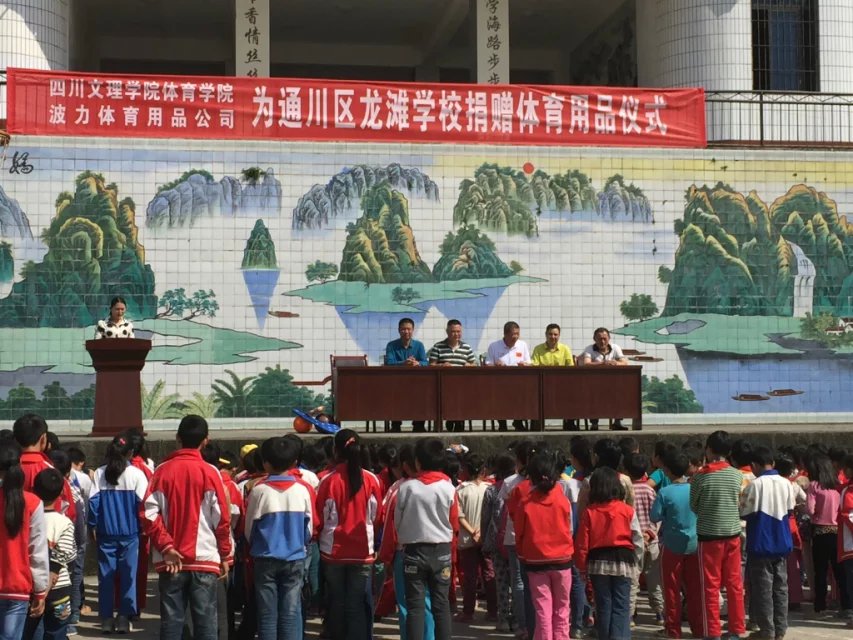 2015年10月15日上午,永利官网联手达州市波力体育用品有限公司,向通川区龙滩乡中心校捐赠了一批体育器材。