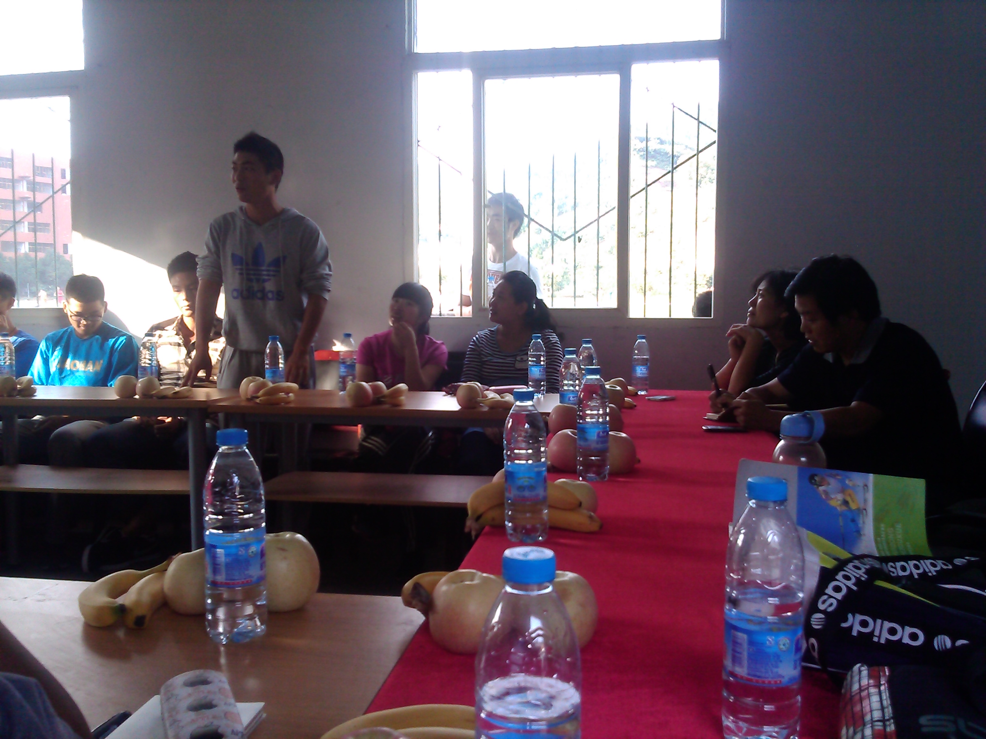 座谈会分为三个阶段进行:新生自我介绍、各位领导讲话、自由发言讨论。永利官网领导老师对本次座谈会十分重视,在会上对每位同学的学习、生活表示亲切的问候。会上气氛十分活跃,同学们也能够敞开心扉与各位领导老师沟通。在座谈会进行中,董主任详细的讲解了同学们在进入大学后应该怎样学习,如何明确自己的目标与方向,树立正确的人生观、世界观。佘书记鼓励省外同学们要多与本地同学共同学习,共同进步,入乡随俗,尽快适应大学生活,发扬我们体育学生能吃苦耐劳的精神,将这里当做第二故乡,让自己的梦想从这里起航。