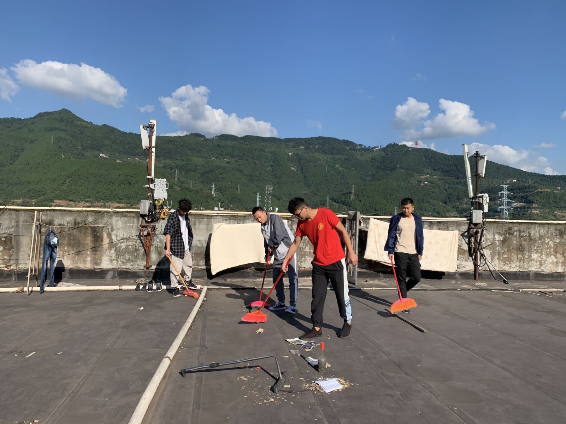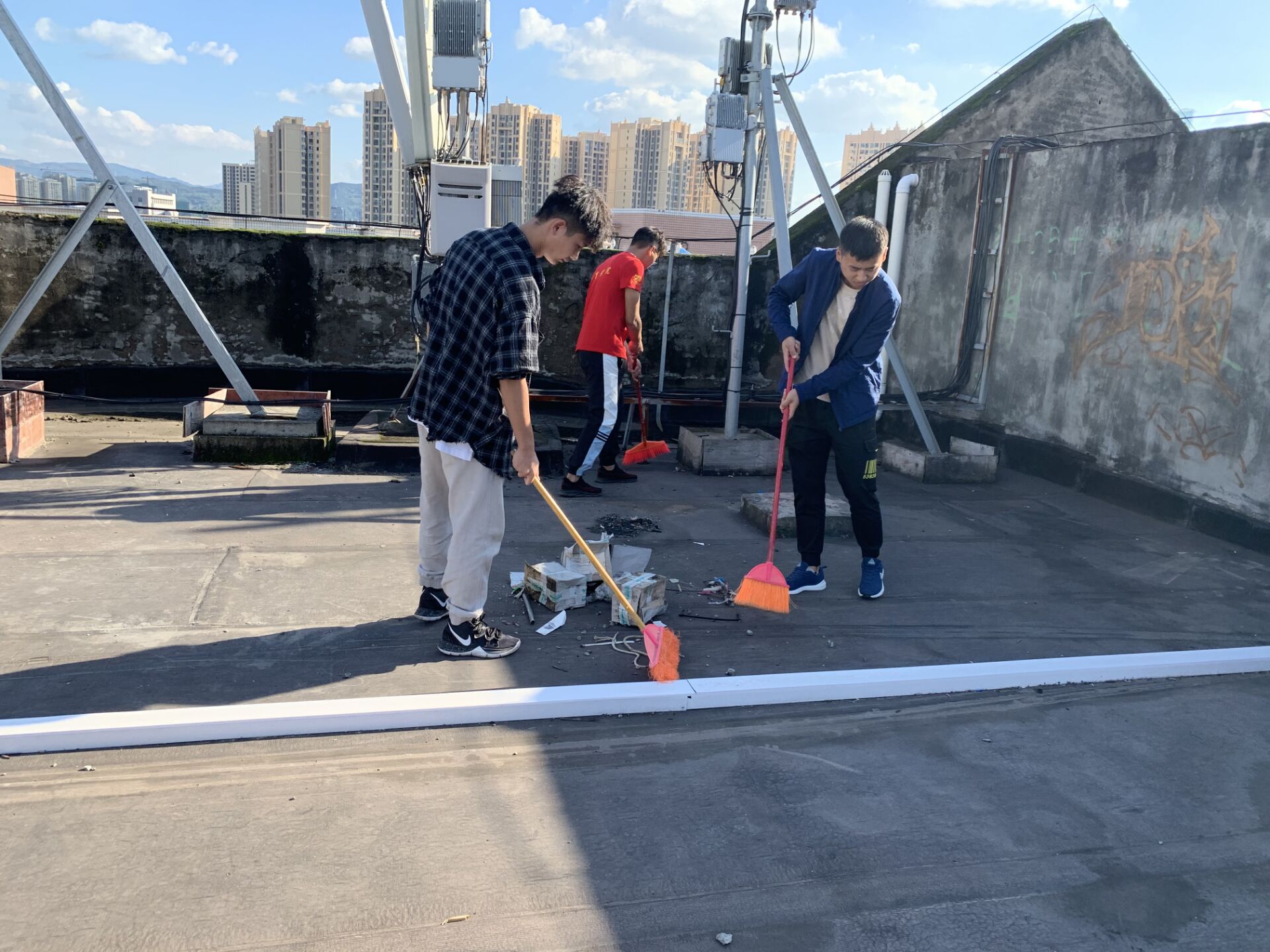 永利yl23411官网由马思远老师带队,劳生部带领永利yl23411官网劳动志愿者分组对九舍进行清洁,主要针对公寓天台、楼道、走廊、学习室窗户、消防栓等边边角角进行排查,清扫。坚决做到地面无垃圾,无积水,过道墙砖明亮干净,无小广告等。同时,大力宣传“四城同创”和文明公寓的工作要求,倡导大家共建共享更加美好生活的环境。