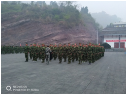 全体起立,奏国歌,军训学员齐唱国歌,在慷慨激昂的歌声中为期九天的军训拉开了序幕,学校党委副书记、工会主席侯忠明教授代表学校对基地领导和教官的付出表示感谢,并对2017级军训学员提出了几点要求。学生工作部(处)陈官章处长也发表了讲话,对军训学员提出了殷切的期盼。典礼上永利官网军训学生代表承诺将严守纪律,以优异的成绩向组织和领导汇报,力争军训之旅的圆满完成。随后,达州市国防教育基地领导对本次军训作了总结,并对军训的圆满完成表示衷心的祝贺。