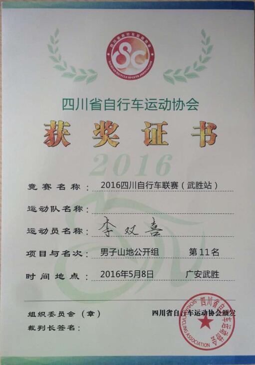 永利官网2015级2班学生李双喜是一位自行车运动的痴迷者,曾多次参加省级比赛并取得了较好的成绩。