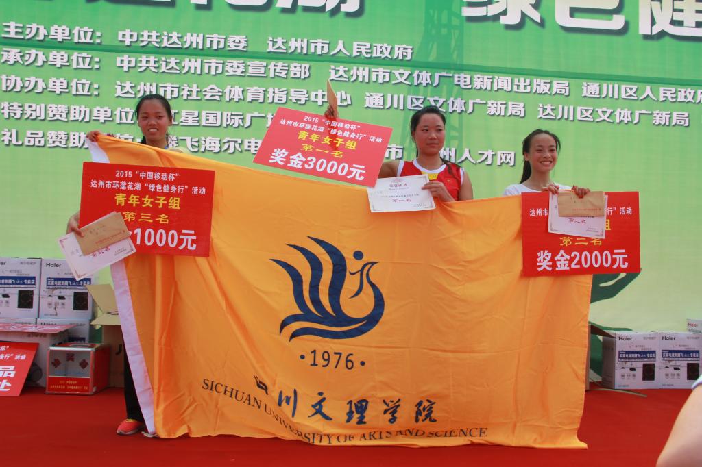 今日(4月28日),2015达州市环莲花湖“绿色健身行”活动圆满落下帷幕,永利官网共有160名同学报名参赛。永利官网学生20128班吴强化、20138班李攀、20138班汪子云包揽了男子组前三名;20136班马秀英、20144班蒋燕、20134班徐芳包揽了女子组前三名;有18名女运动员进入女子组前二十名,创造了永利官网在此项赛事活动中的最好成绩,为学校赢得了荣誉。