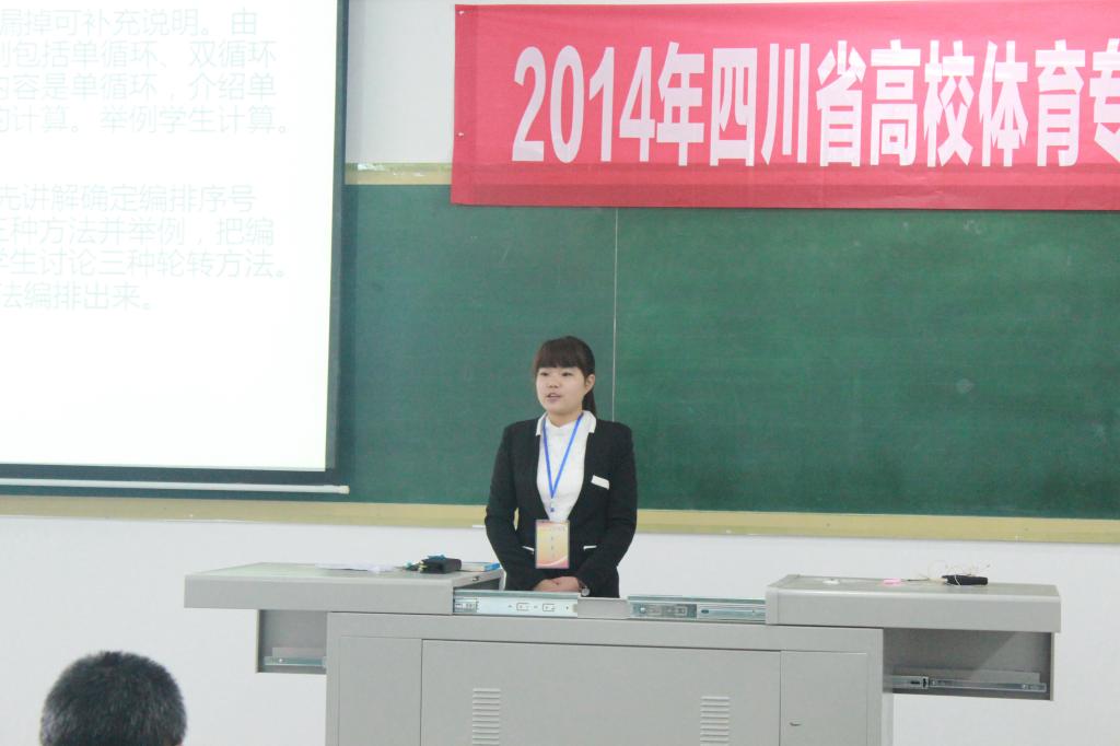 据了解,2014年四川省普通高等院校体育专业学生说(讲)课比赛由四川省教育厅主办,全省共15个体育院校,55名本(专)科同学参赛