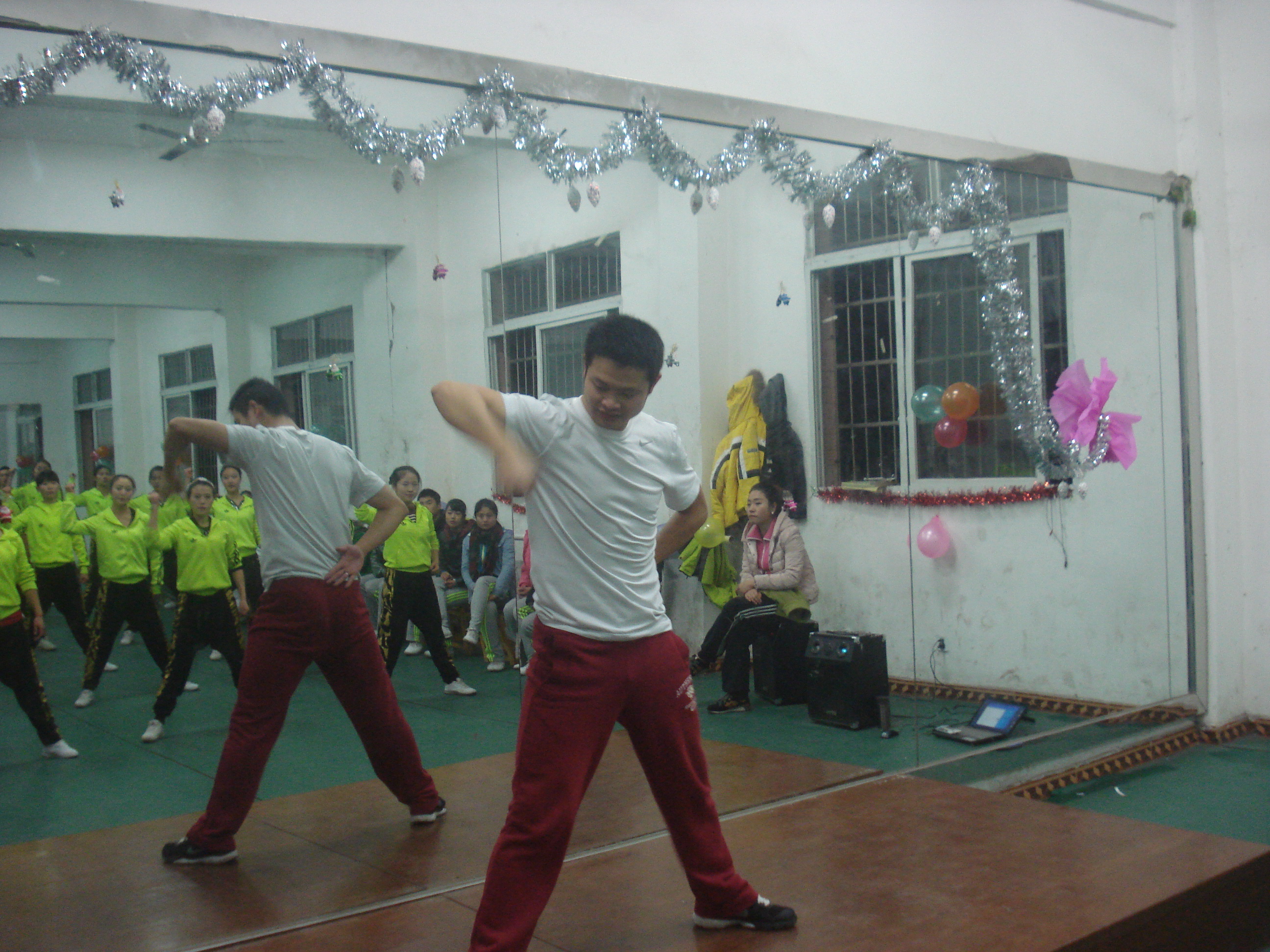 12月25日晚7点,2012级和2014级健美操班的同学们在健美操房对本学期所学的教学成果进行了汇报演出。