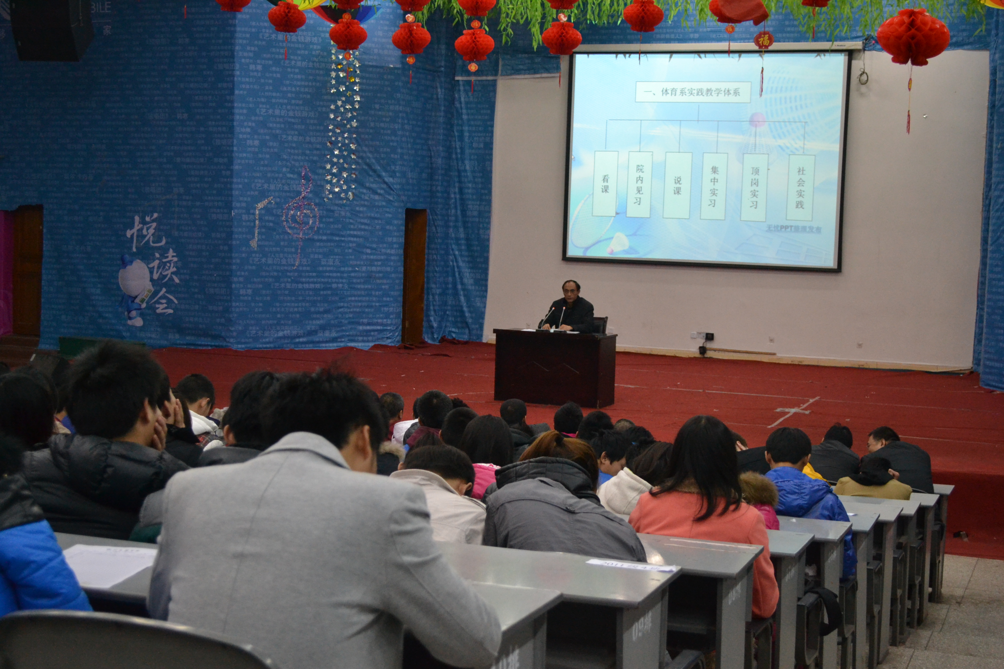 2012年12月10日晚7点,陈碧述教授在永利yl23411官网莲湖校区126教室作题为“抓好实践教学 夯实就业基础”的学术讲座。本次讲座由体育系主任董立教授主持,体育系部分教师及300余名学生到场聆听。