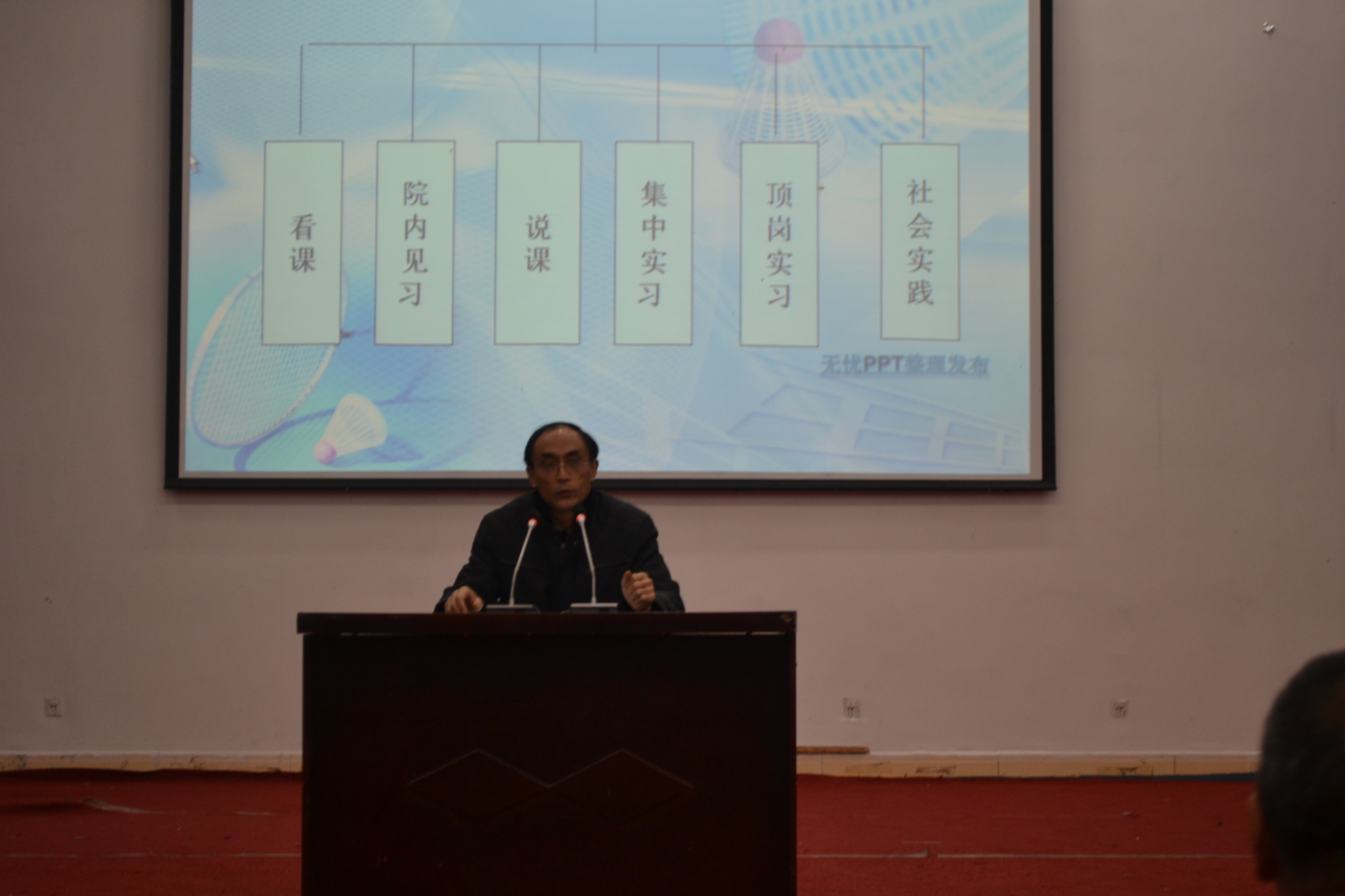 讲座伊始,陈碧述教授简要介绍了实践教学体系的构成及实践教学对学生就业的重要作用。讲座中,陈教授详细讲解了体育系现行的实践教学体系,分析“看课、院内见习、说课、集中实习、顶岗实习、社会实践”重要的实践环节,并结合教学事例,重点针对同学们在实践教学中容易出现的问题,提出解决的策略和建设性的意见。