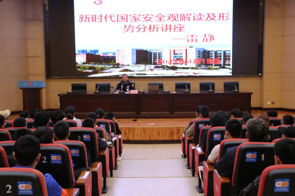 202141519:00,达州市公安局政治安全保卫支队长雷静同志应邀在莲湖校区学术报告A厅作了《新时代总体国家安全观解读及形势分析》的专题讲座。永利yl23411官网全体教职工,2018级、2019级、2020级学生参加了此次讲座。讲座由王兆忠主持。