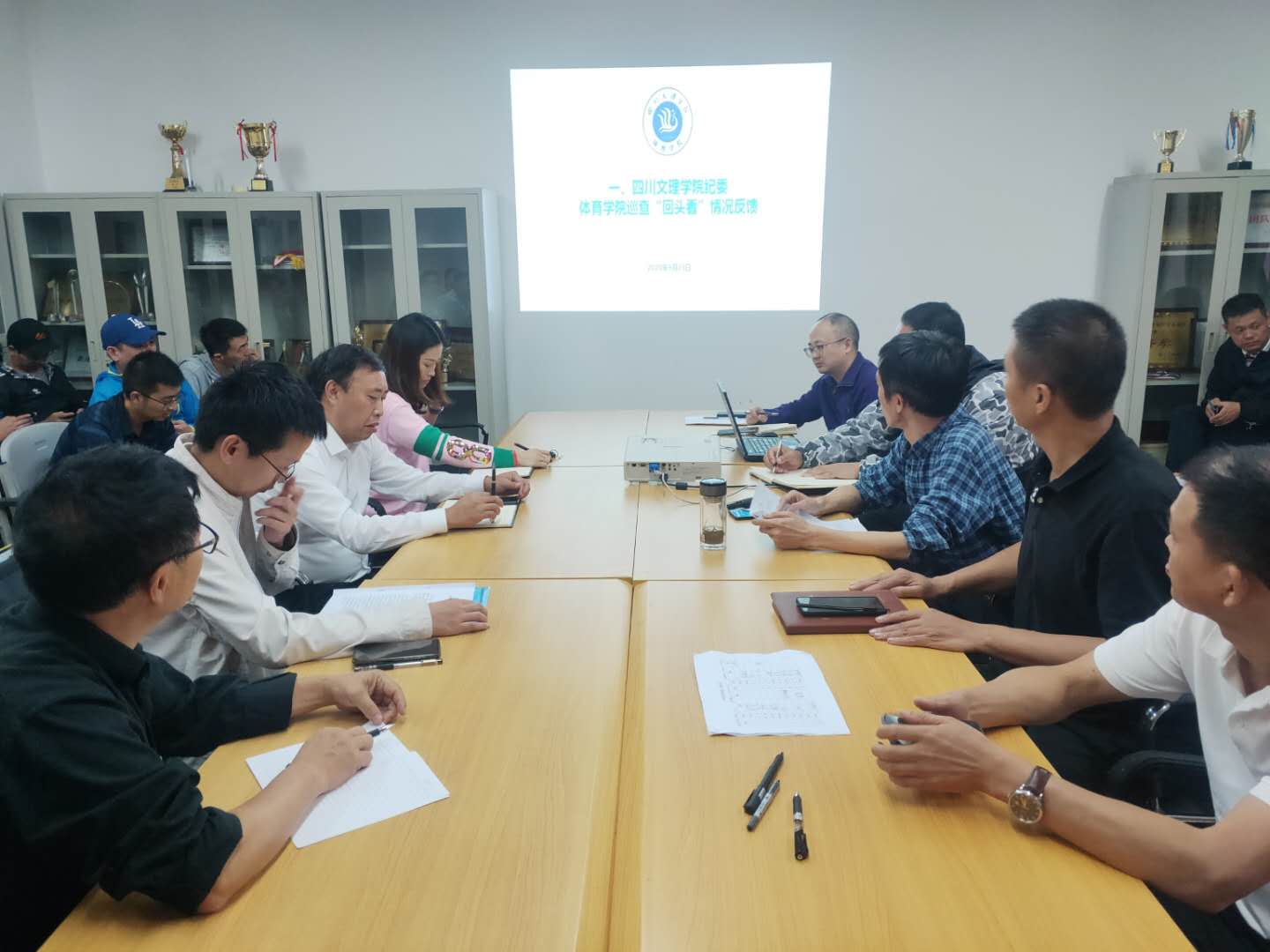 923日下午, 永利yl23411官网召开了巡察“回头看”意见反馈会。党委巡察工作领导小组副组长、党委组织部部长涂德祥、巡查组副组长苟格、督评处蒲善荣、评估处高晶及永利yl23411官网全体教师参加了情况反馈会。会议由学院党总支书记王兆忠主持。