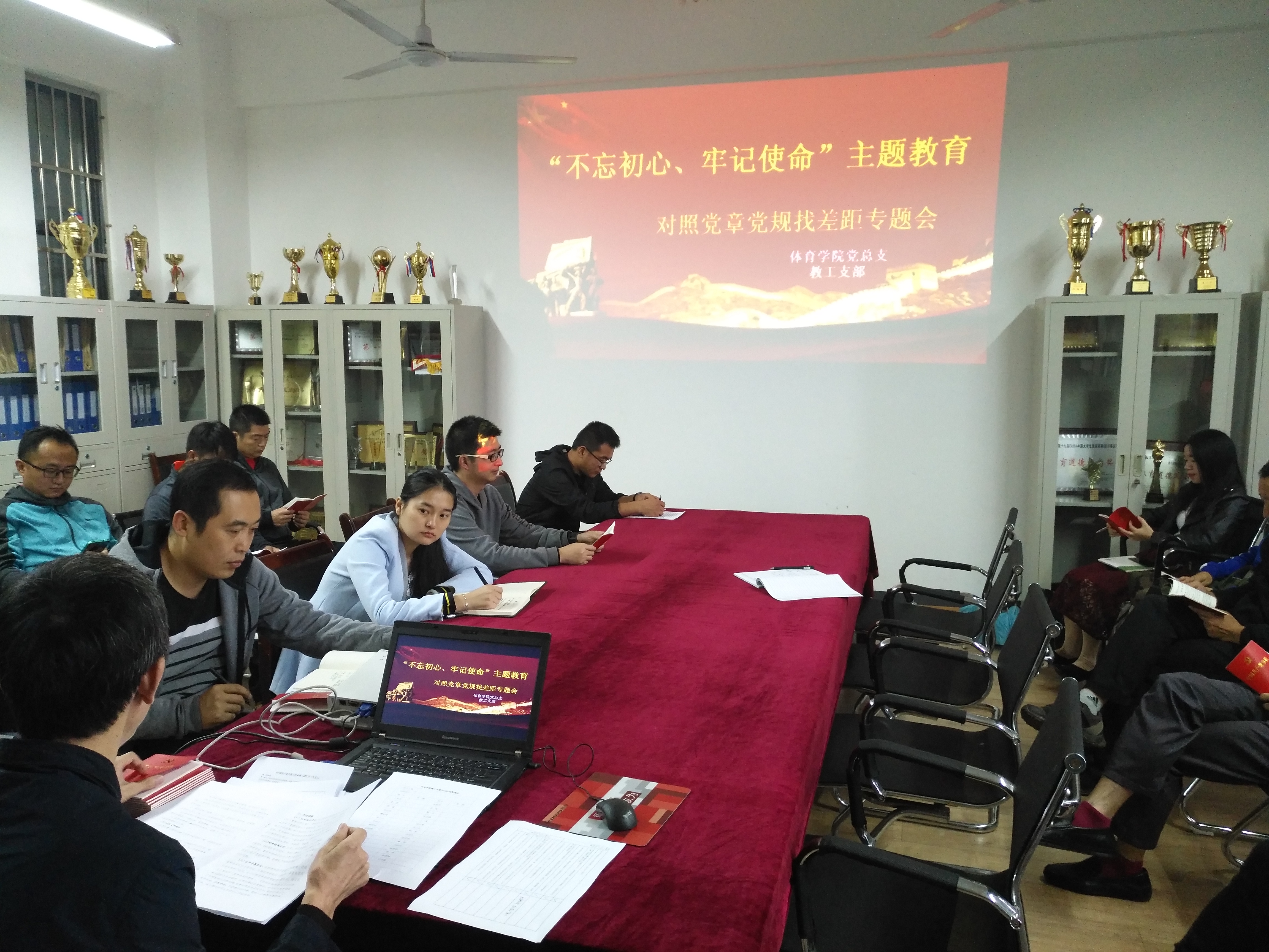 会议分为三个阶段,第一阶段,第一,王兆忠组织全体党员学习了学校党委“不忘初心、牢记使命”主题教育对照党章党规找差距的工作方案。第二,学习“不忘初心、牢记使命”主题教育的应知应会知识,重点强调了目前面临的“四大考验”、“四大危险”等内容。第三,学习党章,重点学习了党员的义务。第四,学习习近平新时代中国特色社会主义思想,要求全体党员同志要务必牢记总书记思想的主要内容。第五,学习关于新形势下党内政治生活的若干准则。第六,学习中国共产党纪律处分条例。第二阶段,王兆忠代表支部对照党章党规查摆了领导班子存在的差距。第三阶段,每位党员结合所学知识,对照党章党规逐一回答“18个是否”, 找差距,找不足。与会的党员同志结合自身的思想生活工作实际,对照党章党规认真进行了对照反思。
