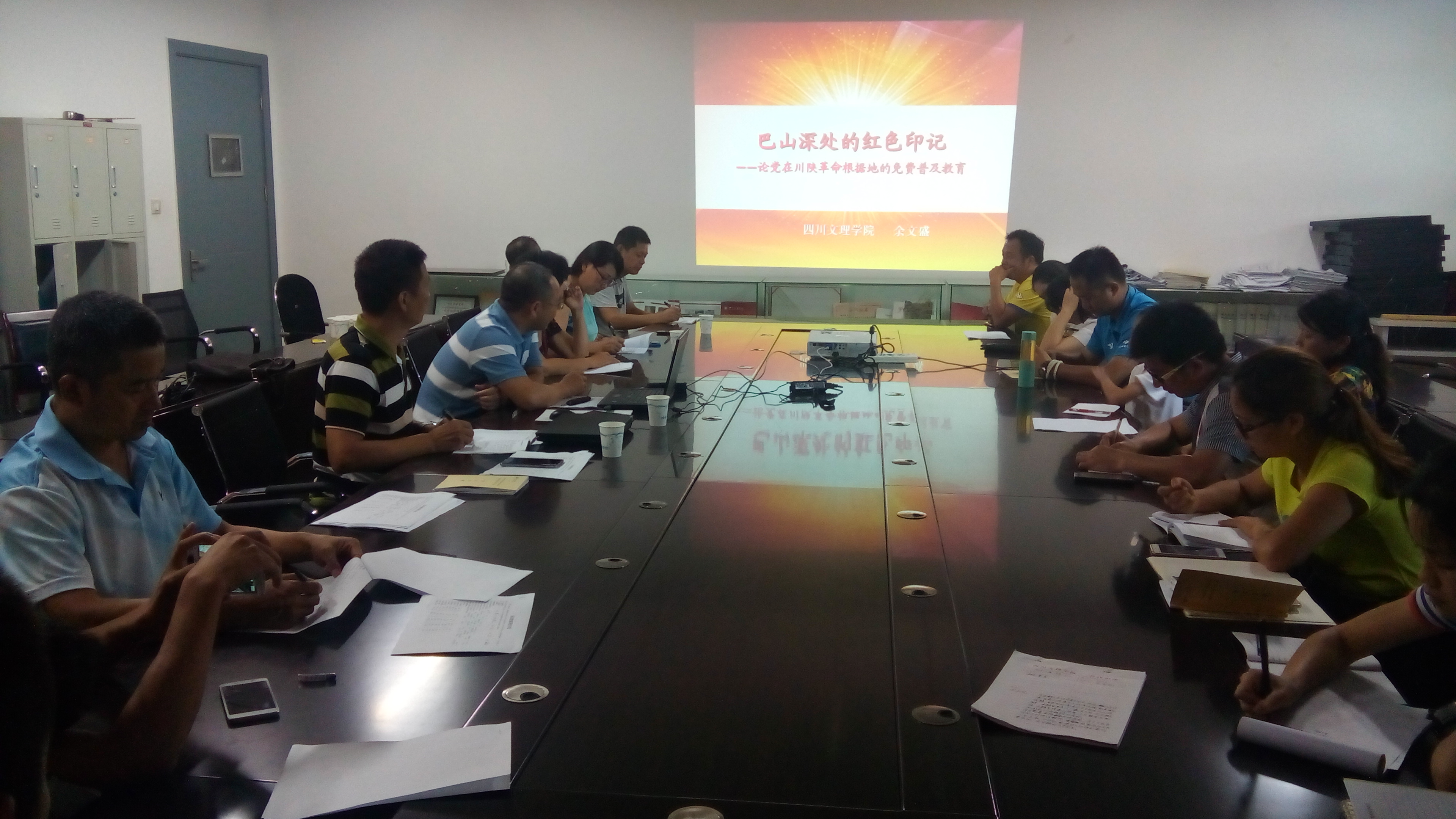 628下午,学院全体教师党员和部分学生党员,在传媒大楼1011会议室,聆听了宣传部部长余文盛教授题为“巴山深处的红色印记——论党在川陕革命根据地的免费教育”的专题党课。
