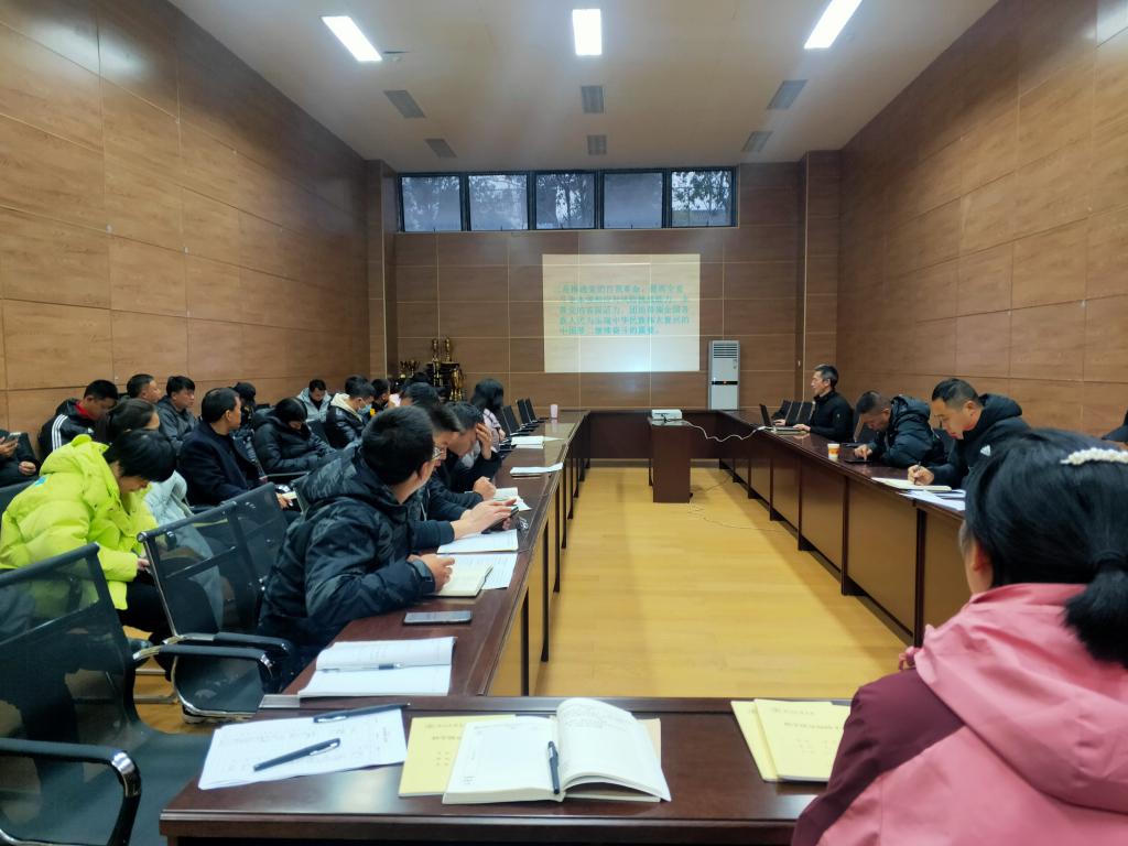 1215日,永利yl23411官网全体教职工在体育馆副馆集中学习党的十九届六中全会精神,党总支书记王兆忠主持学习会并作学习辅导。