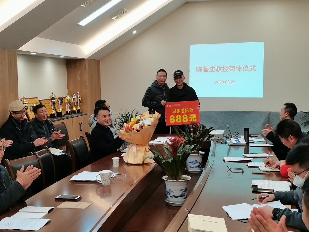322日,永利yl23411官网在体育馆117会议室为学院陈碧述教授举行了荣休仪式。仪式由党委书记王兆忠主持,学院全体教师参加了此次活动。