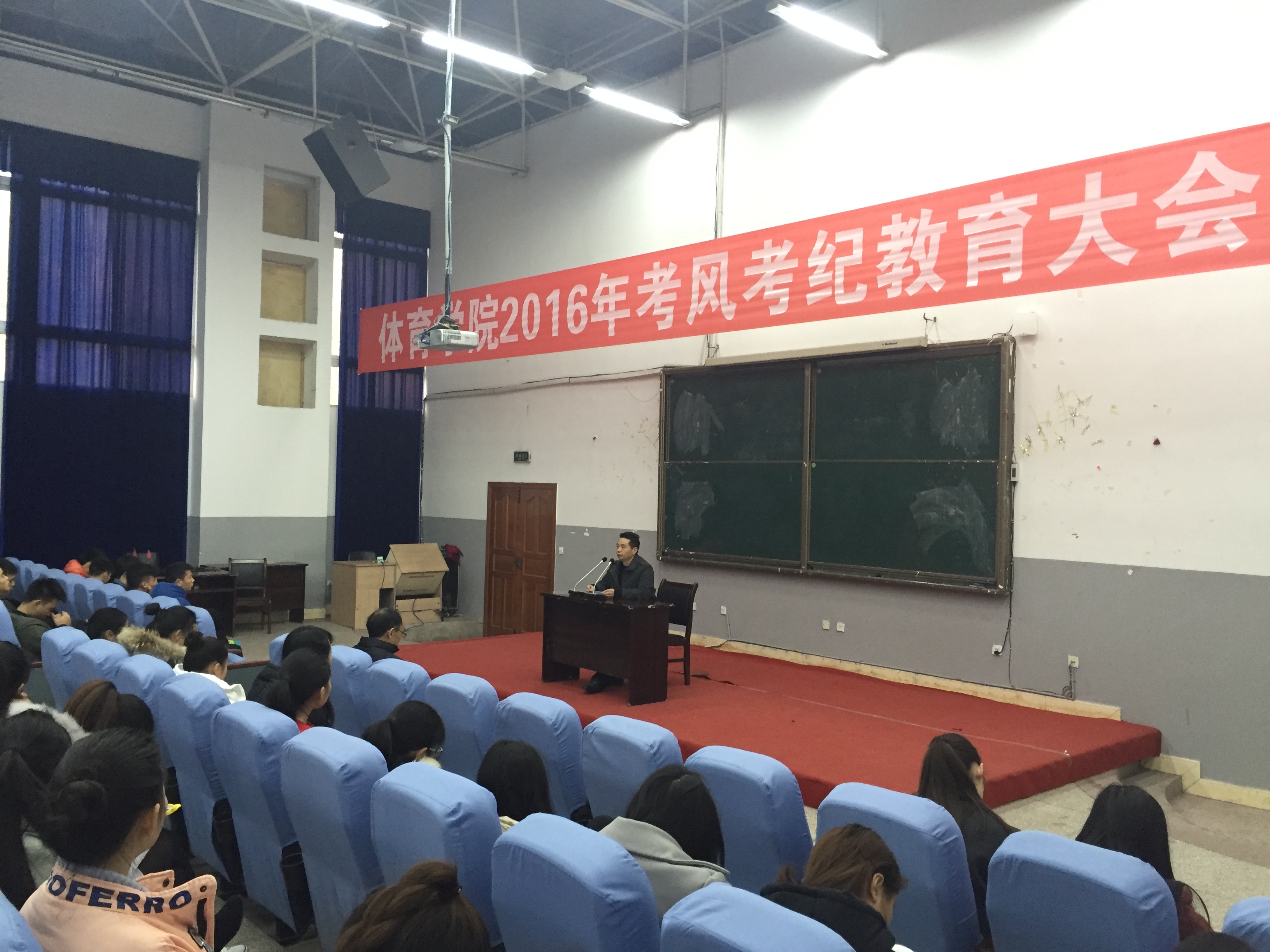 1月3日16:30,学院2016学年考风考纪教育大会在一教学楼113教室召开。参加此次大会的有学院副院长陈碧述老师,学院党总支副书记王进老师,辅导员那明明老师以及2016级全体学生。