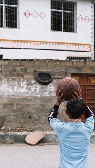 这是金阳县对坪村落的一个学生家门前,简易的“篮球框”装满了他对篮球的热爱。