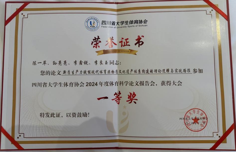 永利官网联合培养研究生获四川省高校体育科学论文报告会一等奖