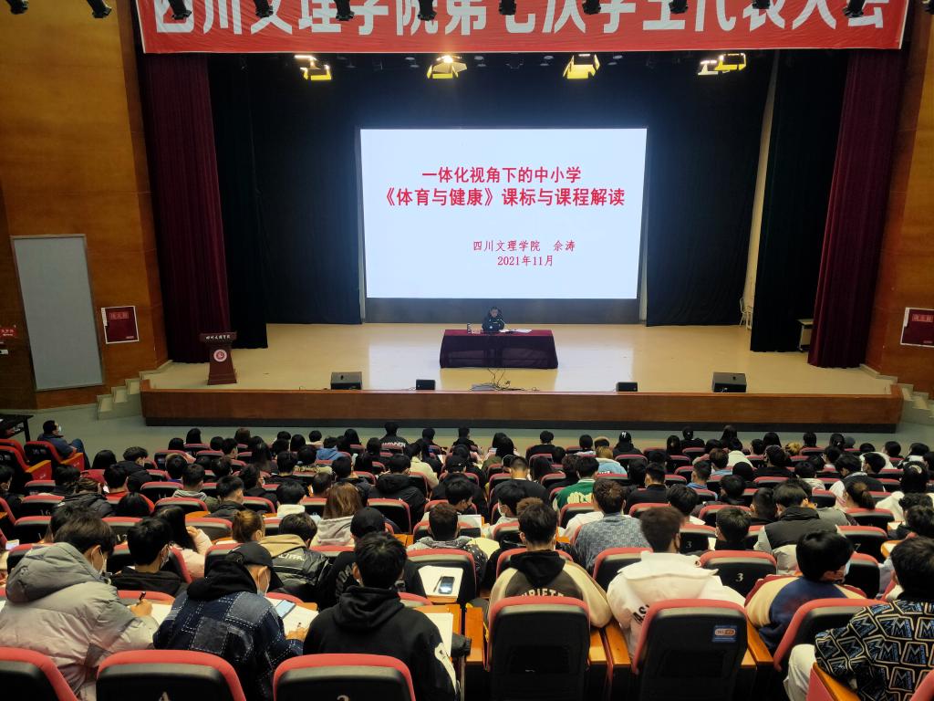 1128日下午,永利yl23411官网教授佘涛在莲湖校区多功能厅为本院学生作题为“一体化视角下的中小学《体育与健康》课标与课程解读”的学术讲座。讲座由副院长孙亮亮主持,大一、大二学生到场聆听。