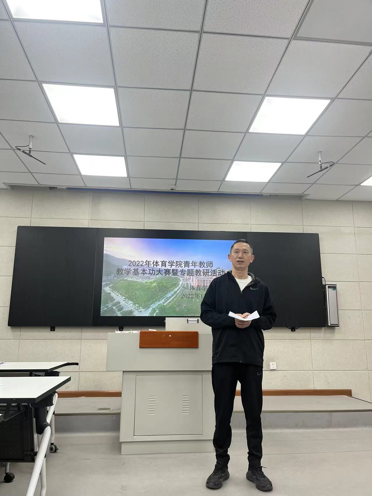 正式比赛前,孙亮亮致辞,他强调“以赛促学、以赛促教、以赛促改、以赛促建”是比赛的根本目的,他希望参赛选手们以“平常心、正常态”的心态对待比赛,不保留不畏惧,把握好展示、锻炼的机会。