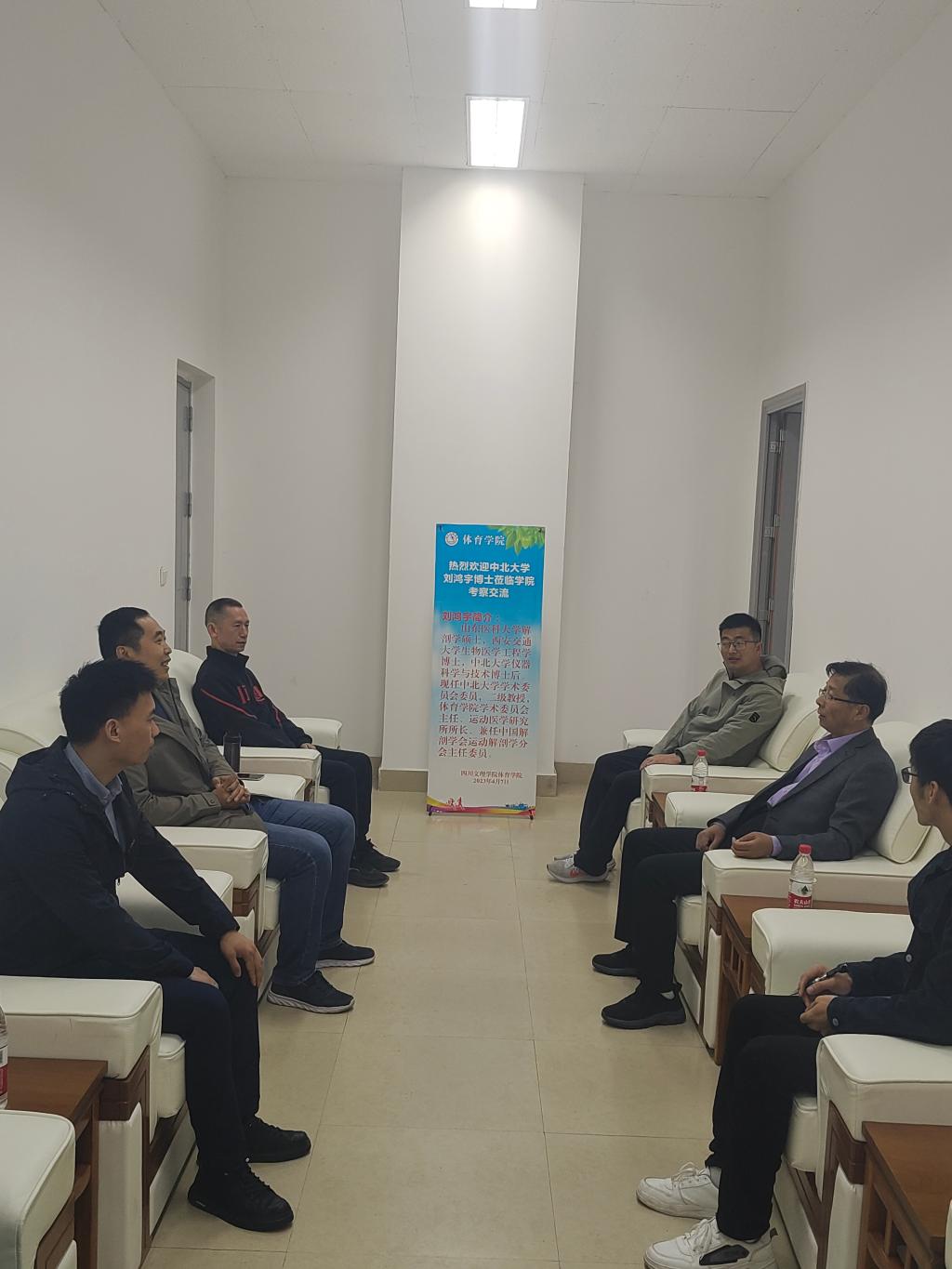 48日,中北大学运动医学研究所所长、二级教授,中国解剖学会运动解剖学分会主任委员刘鸿宇教授一行,来永利官网进行交流。学院党委书记王兆忠、副院长孙亮亮、副书记靳浪陪同,王茂、盛佳智和周剑三位老师参与交流。双方就实验室建设、学科发展、人才培养、本科生毕业论文的写作及规范化等方面进行了深入的交流。