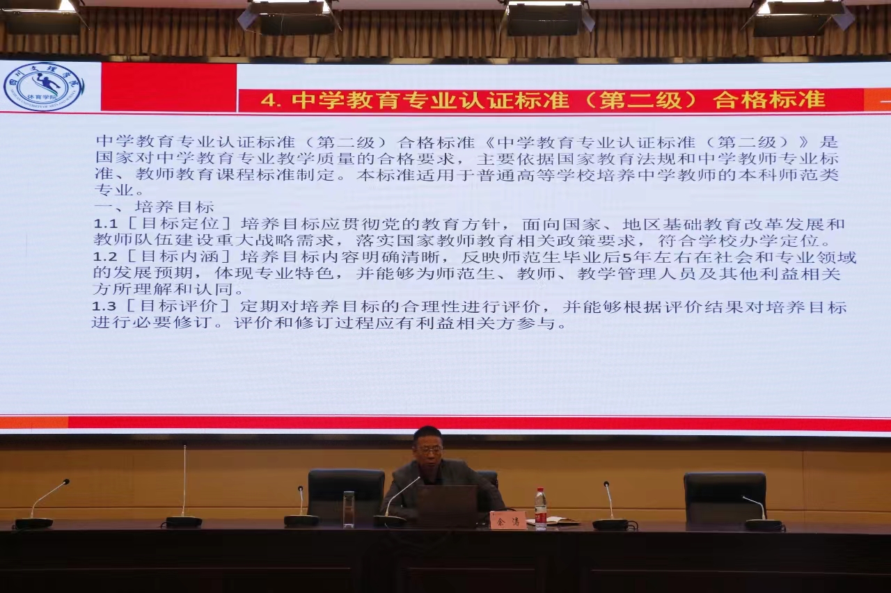 结合当前的师范专业认证工作,佘涛强调,要增强责任意识、主人翁意识、参与意识,以积极的心态对待认证、参与认证,展示良好的学风和精神面貌。