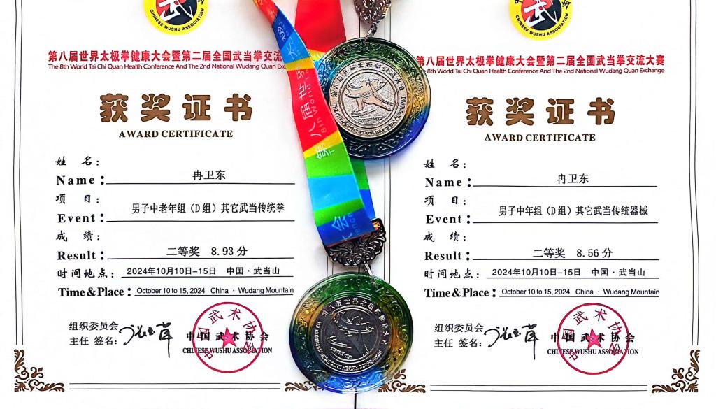 永利yl23411官网冉卫东在“第八届世界太极拳健康大会暨第二届全国武当拳交流大赛”中斩获佳绩