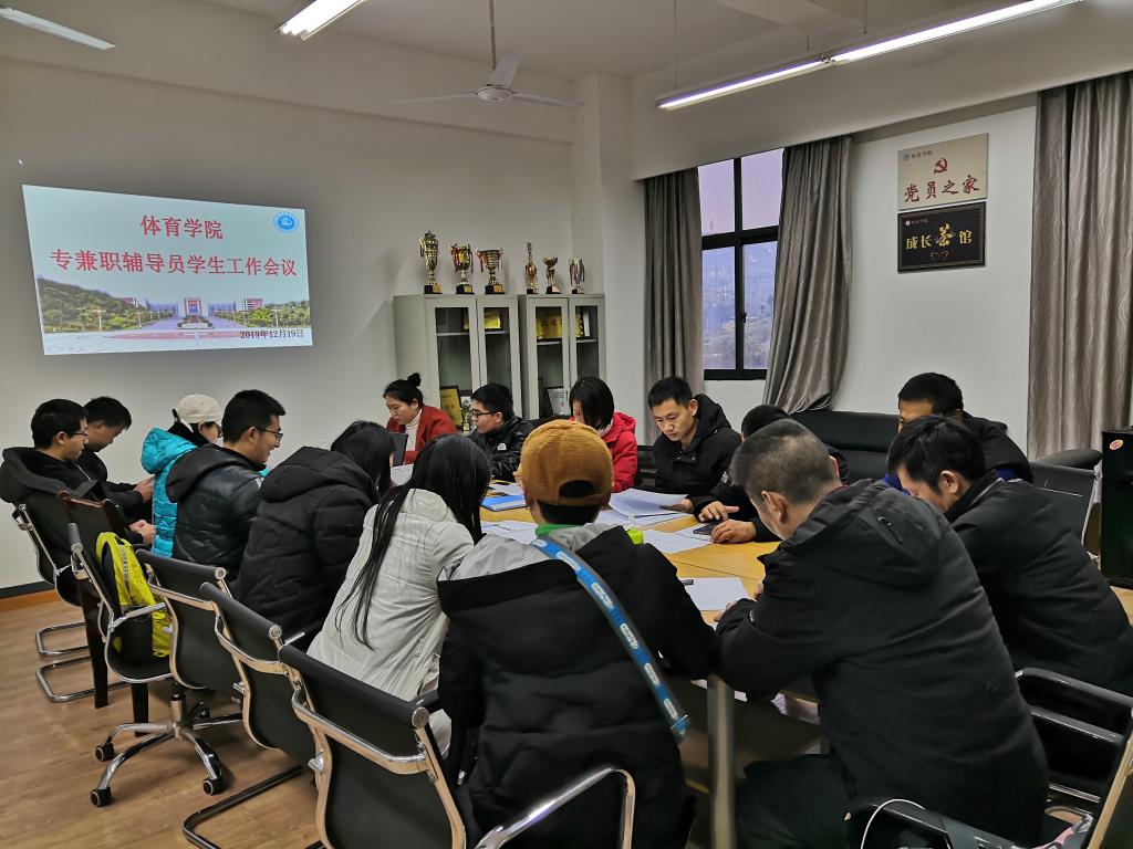 20191219日下午4:20,在艺术传媒大楼3019召开永利yl23411官网专兼职辅导员学生工作会议。永利yl23411官网党总支书记王兆忠、党总支副书记彭波以及全体专兼职辅导员出席本次会议。会议由王兆忠主持。