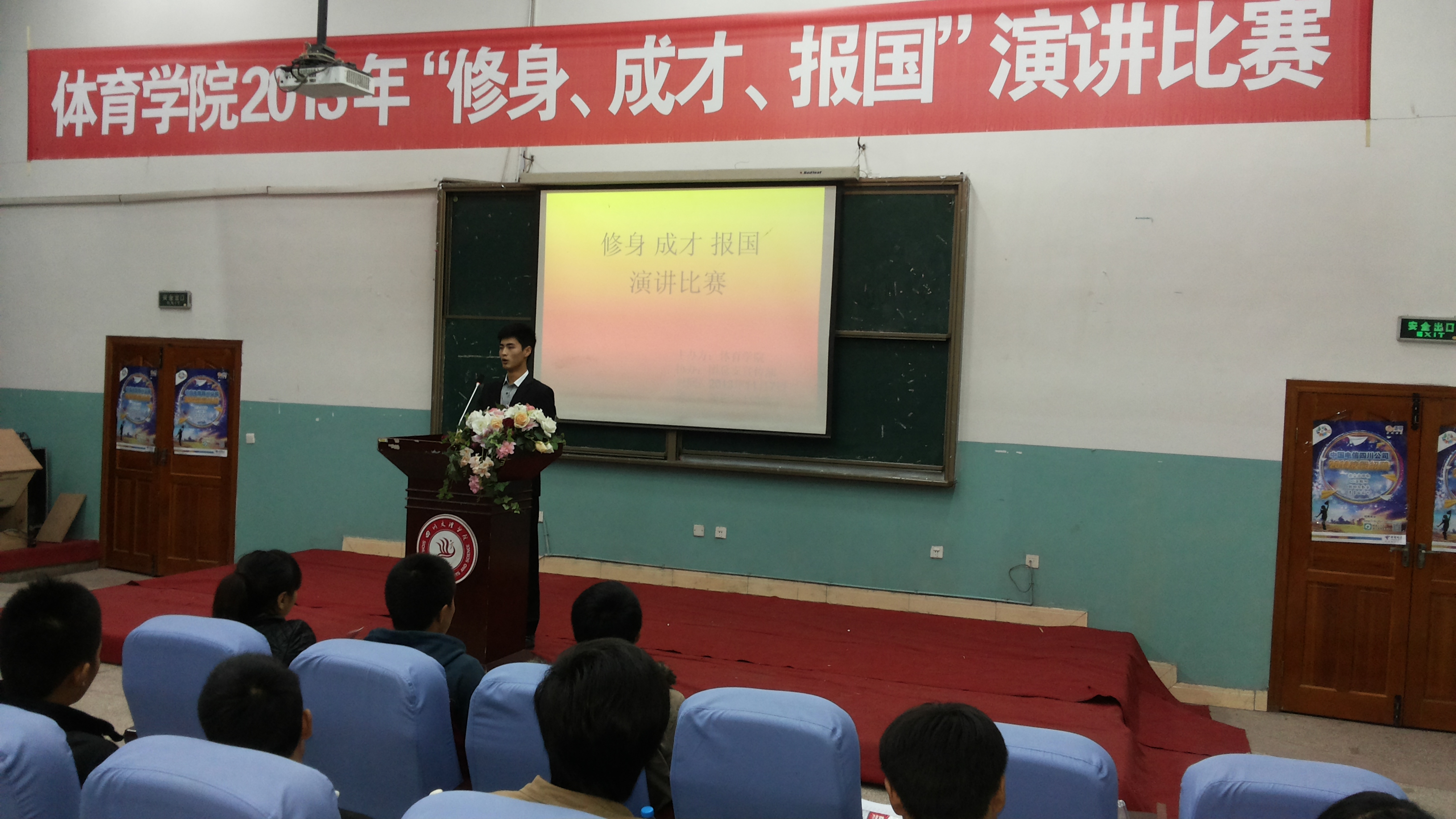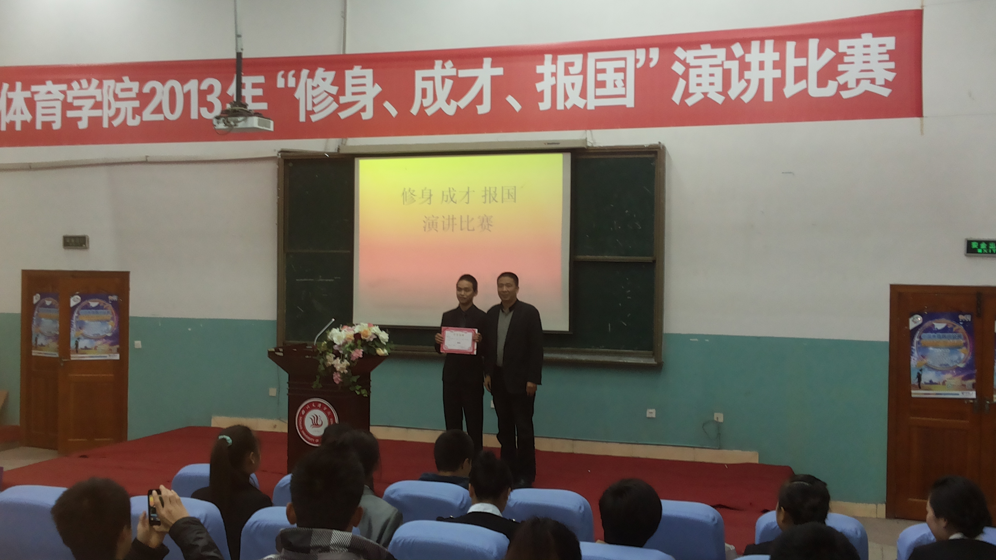 2013117日,永利官网在莲湖校区113教室成功举办了第十四届“修身、成才、报国”演讲比赛。永利官网党总支书记佘涛、副主任陈碧述、副书记张皓、辅导员李霞、那明明及体育系团总支学生会的重要干部担任了本次比赛的评委。2013200余名学生共同观看了比赛。本次演讲比赛由何其波同学主持。