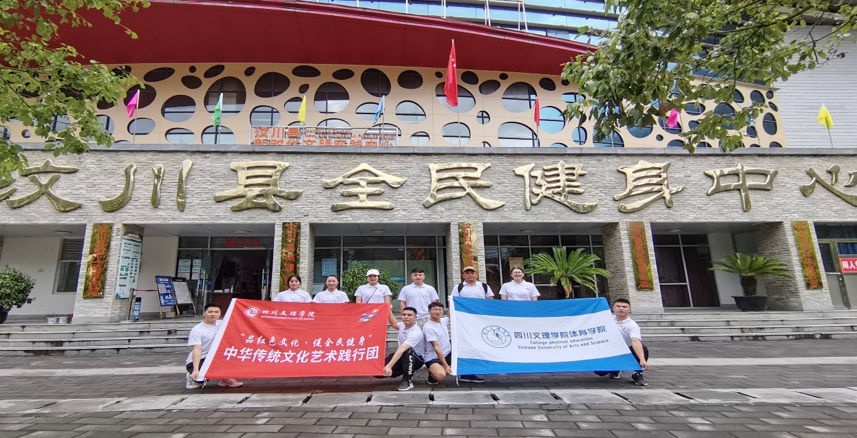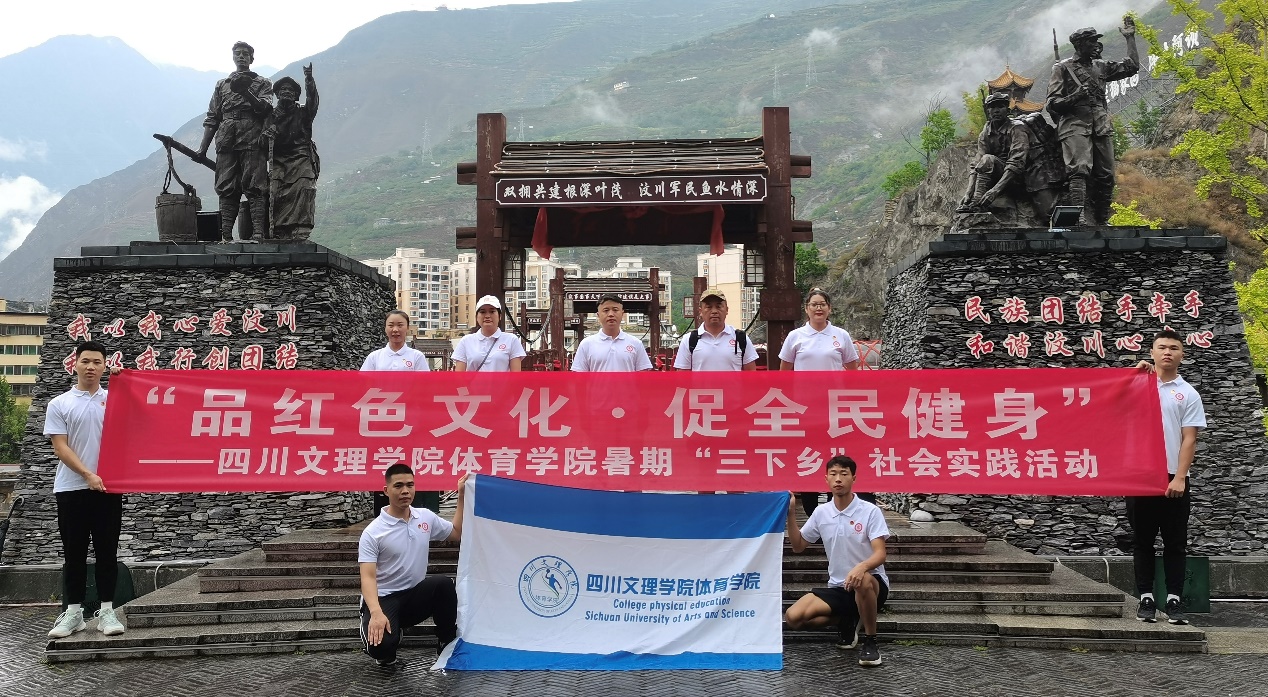 为弘扬红色精神,推广全民健身,在中国共产主义青年团成立一百周年之际,永利yl23411官网“中华传统文化艺术践行团”于2022年8月18日至8月22日在四川汶川、都江堰和成都锦江区开展了为期5天的社会实践活动。践行团前往爱国主义教育基地体验红色文化,深入居民健身中心广场和社区调研全民健身开展情况、宣传全民健身相关知识。