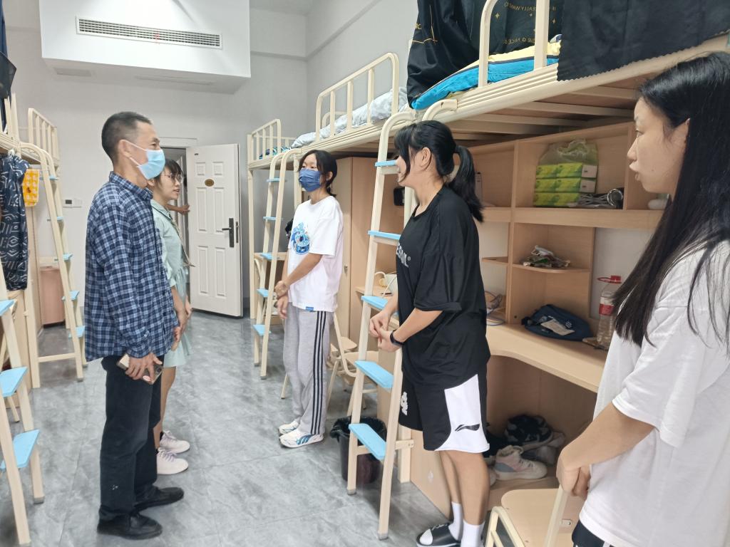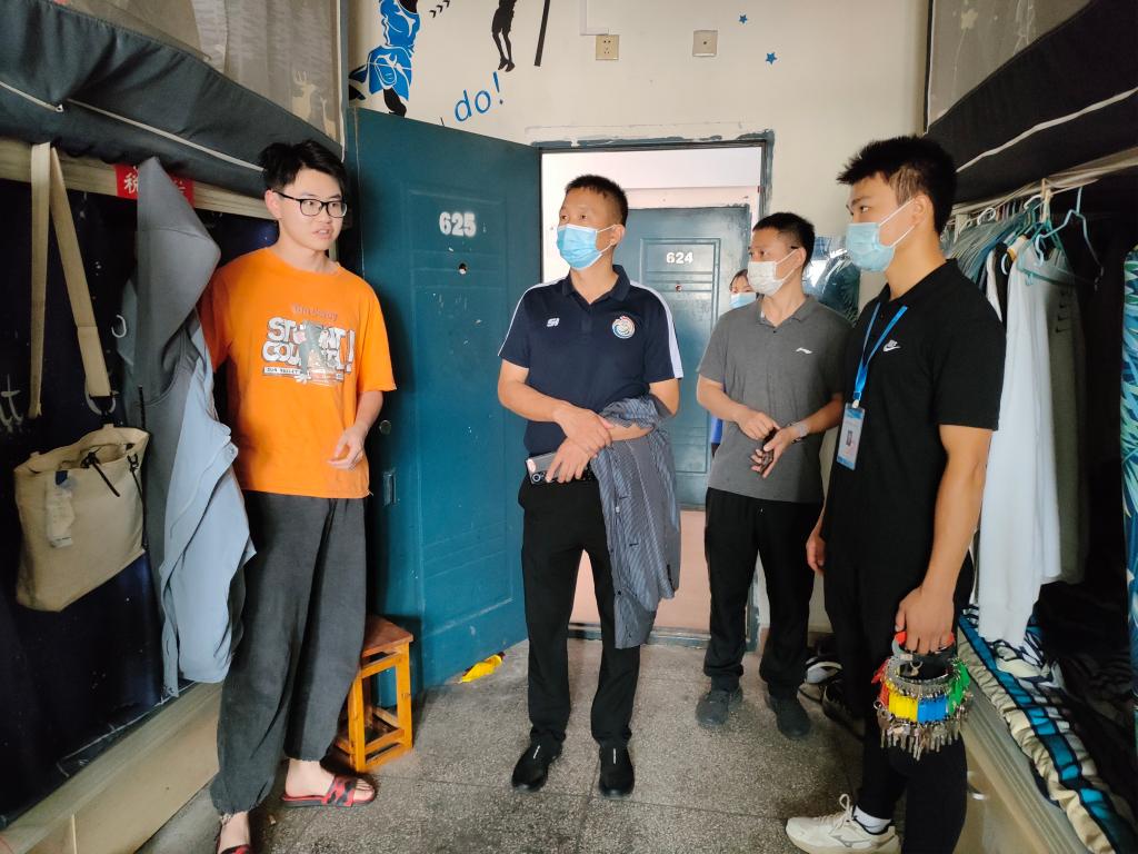本学期因酷暑、疫情而延期开学,为了深入了解学生新学期特殊情况下返校后的生活状况和思想动态,帮助学生切实解决生活和学习中遇到的困难,加强与学生的交流和沟通,排查安全隐患,近日,永利yl23411官网党政领导带领各科室负责人、全体专兼职辅导员以及团总支学生会主要学生干部走访了学生宿舍。