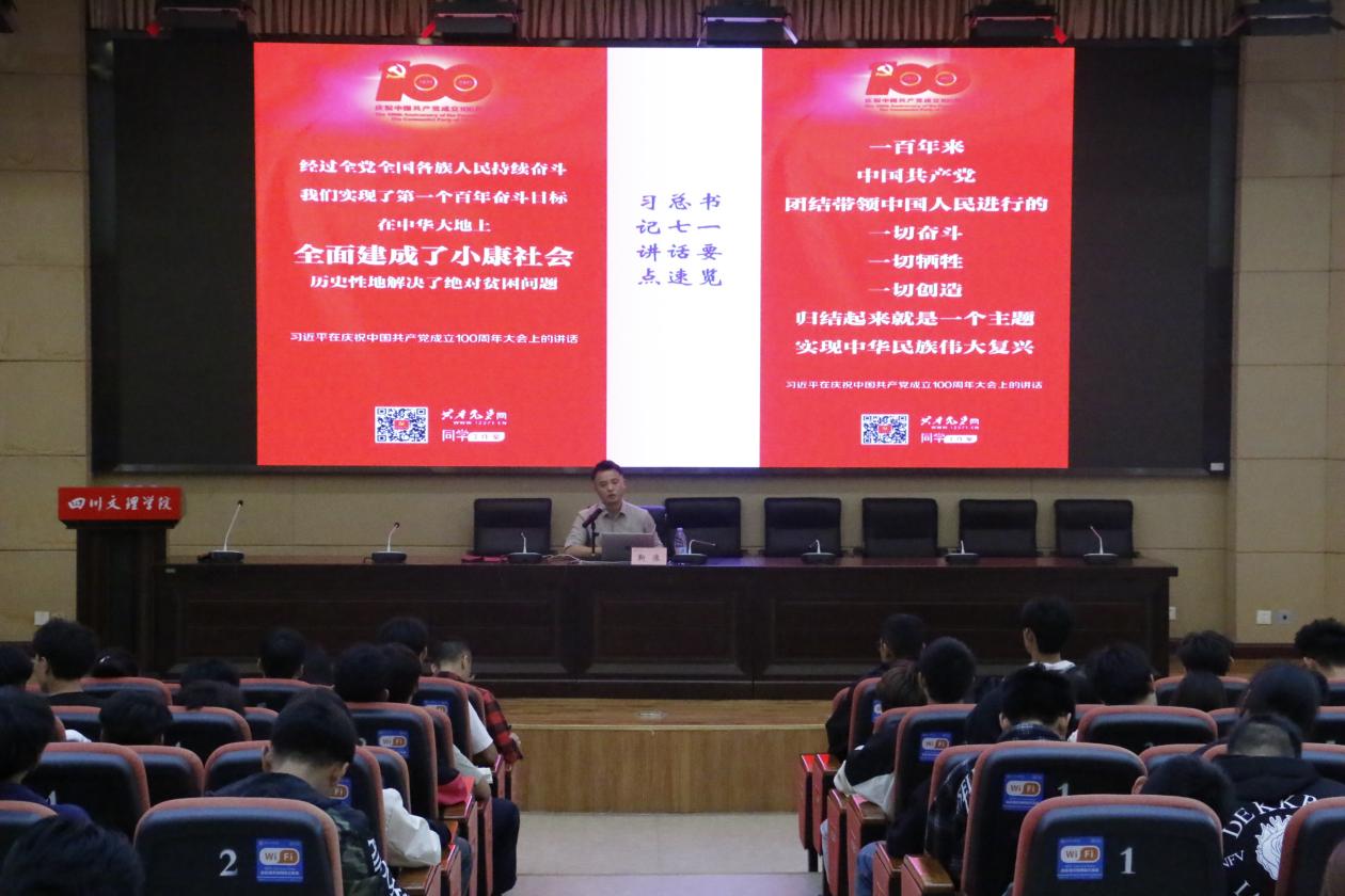 20231013日下午1点,永利yl23411官网在学术报告厅A厅开展了以“不忘初心跟党走”为主题的新生入学教育讲座。学院党委副书记靳浪担任主讲,学工办主任祝利平、辅导员李波以及2023级全体新生参加讲座。