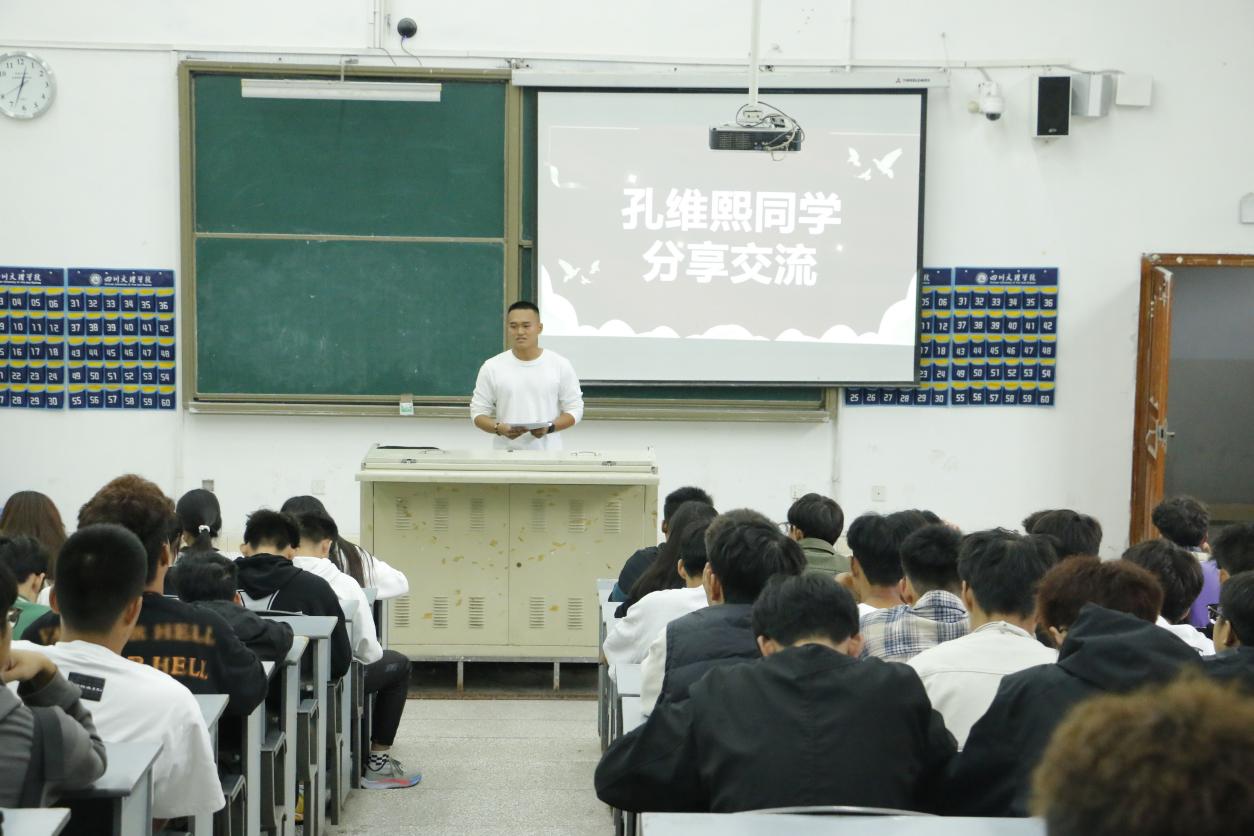 体育讲坛是学院为学生提供集中学习和锻炼自我的平台,也是团总支开展主题教育工作的一部分,通过退伍复学同学对军旅生活经历的分享,引导同学们合理规划大学生活,激发学习热情,不断开拓进取,不辜负大学时光。