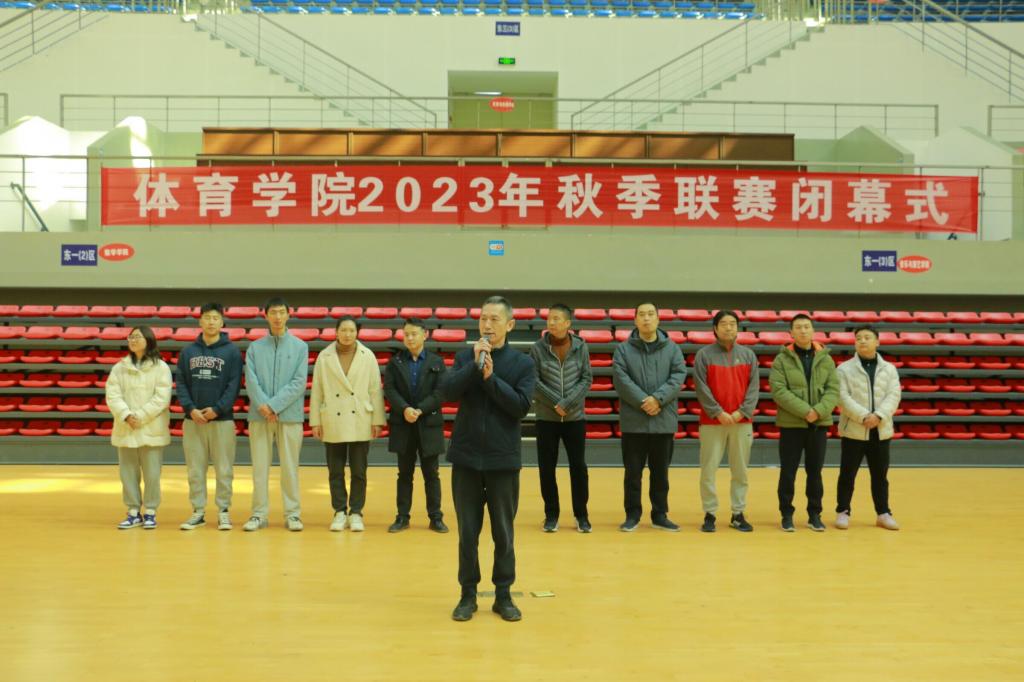 闭幕式上举行了武术表演和颁奖仪式,各项目获胜代表队、球员以及优秀裁判员接受了表彰。学院党委书记王兆忠为本次联赛致闭幕辞,他讲到:“以赛促学、以赛促练、以赛促教”是我们举办联赛的目的,联赛虽然结束了,但是“学、练、教”不会结束,而且永远在路上。他强调,一是做好赛后的总结工作,既要总结成绩,更要从中发现问题、分析问题,从而解决问题,这样才更有利于成长。二是把握好赛和练的关系,赛需练,练为赛。希望看到在赛事结束后,在操场、运动场有更多的人自主地参加到更多的训练之中,为以后的比赛成绩提升奠定更高的基础。