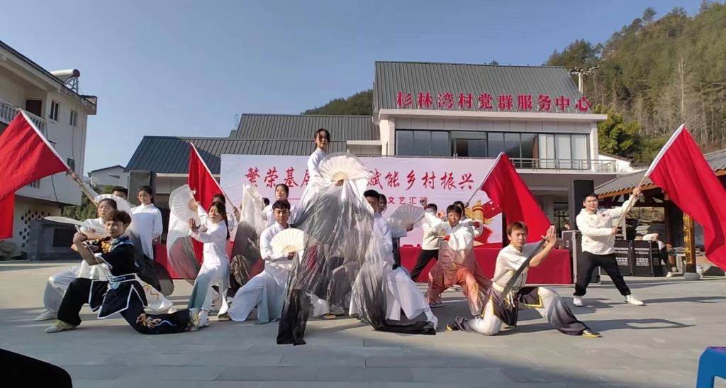 学院高度重视,就万源石塘镇杉林湾村托底帮扶志愿活动顺利推进举行了专题会议,确定了参演方案、节目及负责人,并提出了“确保安全,确保质量”的要求。武术教研小组随即行动起来,选拔队员,组织排练。111日,永利yl23411官网武术队正式前往万源市石塘镇杉林湾村开展了“繁荣基层文化,赋能乡村振兴”的传统体育文化展演。本次活动由李波老师带队,由杨慧、蒲黔蜀等20名学生参与。