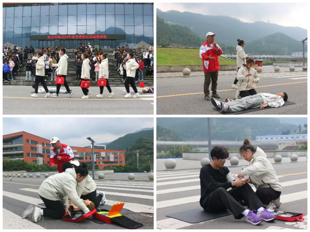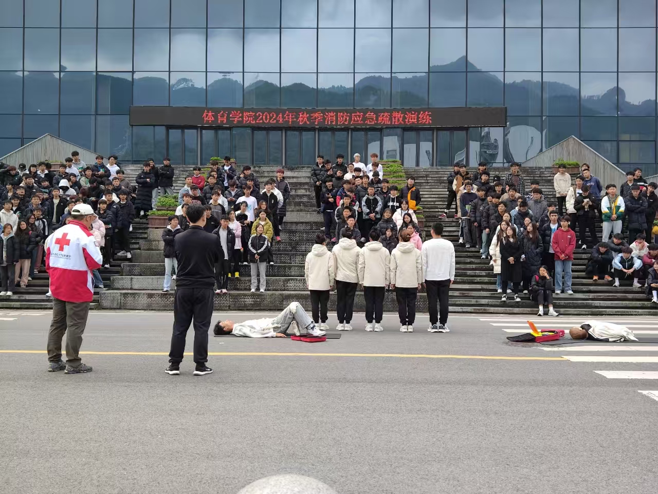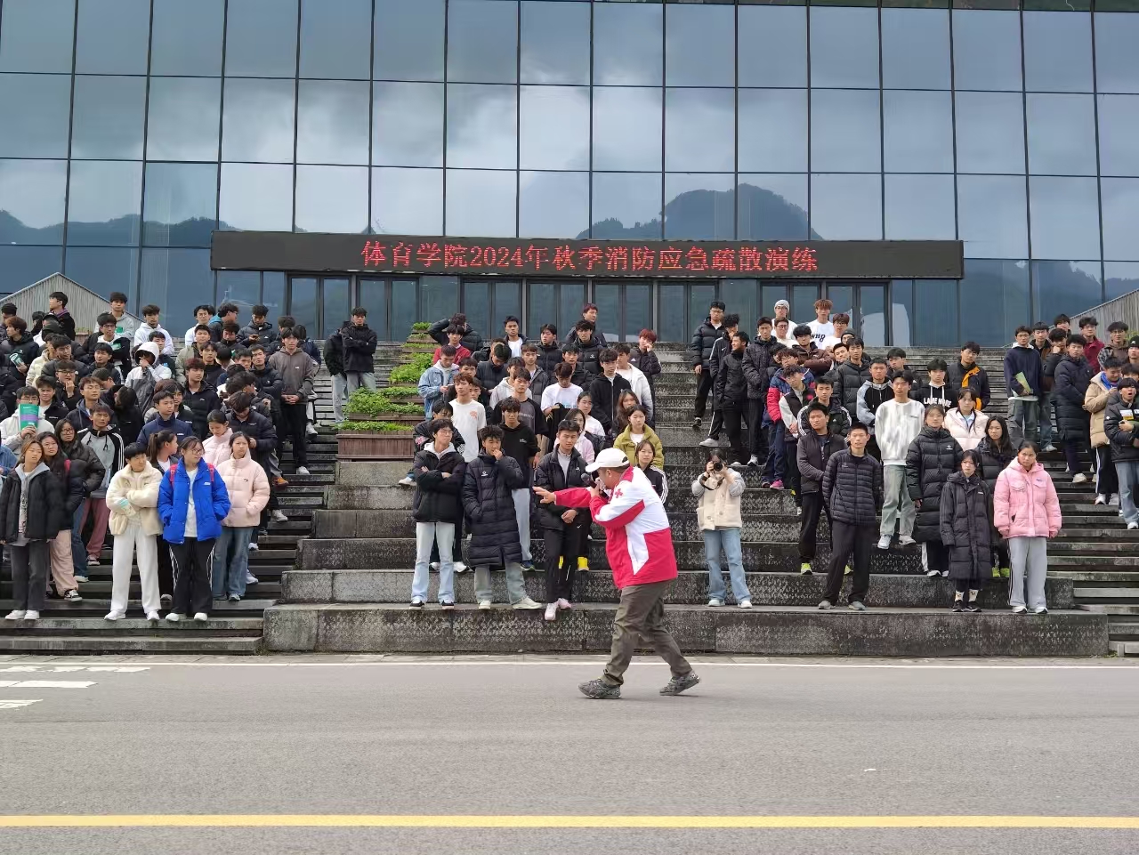 2024112212点整,永利yl23411官网于体育馆开展了消防应急疏散演练。学院党委副书记靳浪、辅导员邓超、李波、专任教师宋京林、7 名红十字救护员及2024 级全体学生参与此次活动。