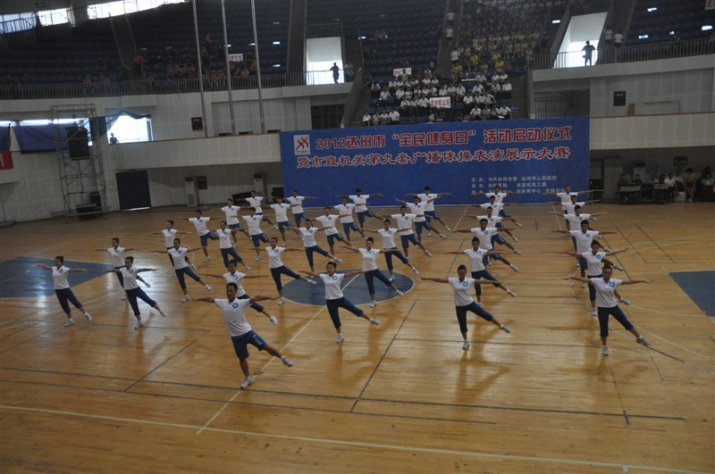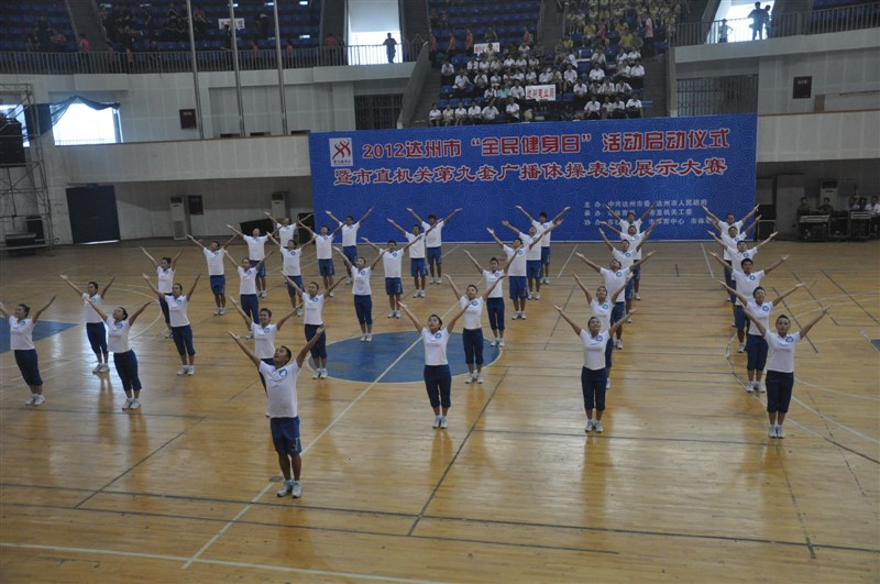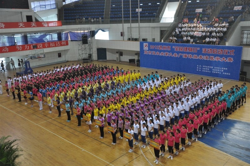 为了更好的营造全民健身活动氛围,提高广大市民的健身理念,努力建设幸福达州,8月8日上午,2012达州市“全民健身日”活动启动仪式暨市机关第九套广播体操表演展示大赛在市体育馆隆重举行,本次比赛由中共达州市委,达州市人民政府主办。永利yl23411官网党委书记李万斌教授受邀出席了活动的启动仪式并观看了比赛。体育系董立主任,系党总支佘涛副书记(主持全面工作),系党总支张皓副书记,系辅导员及学院的教师代表一行观看了全程比赛。