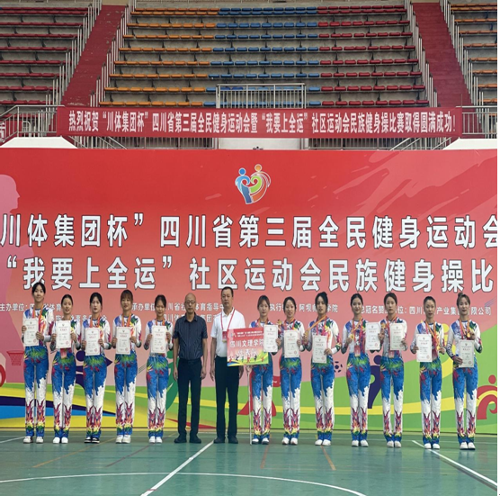 2021年“川体集团杯”四川省第三届全民健身运动会暨“我要上全运”社区运动会于919日落下帷幕。在教练员冉卫东,李慕怡的悉心指导下,队员们经过近一个月的艰苦训练,永利官网参赛队在与各地级市10支代表队角逐中脱颖而出,取得佳绩,获得民族健身操规定套路B组一等奖。